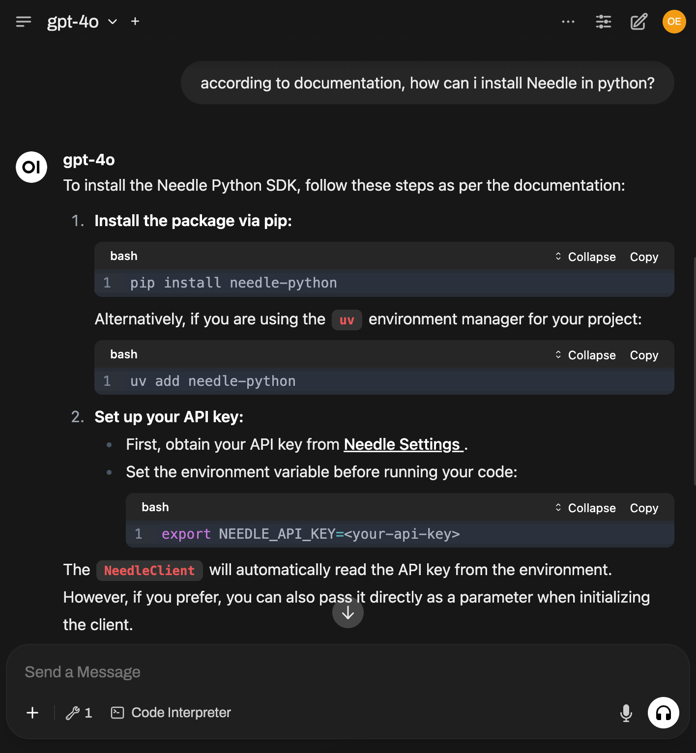 Need help? The Needle and Open WebUI communities are great resources if you run into issues.