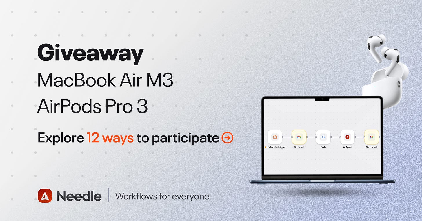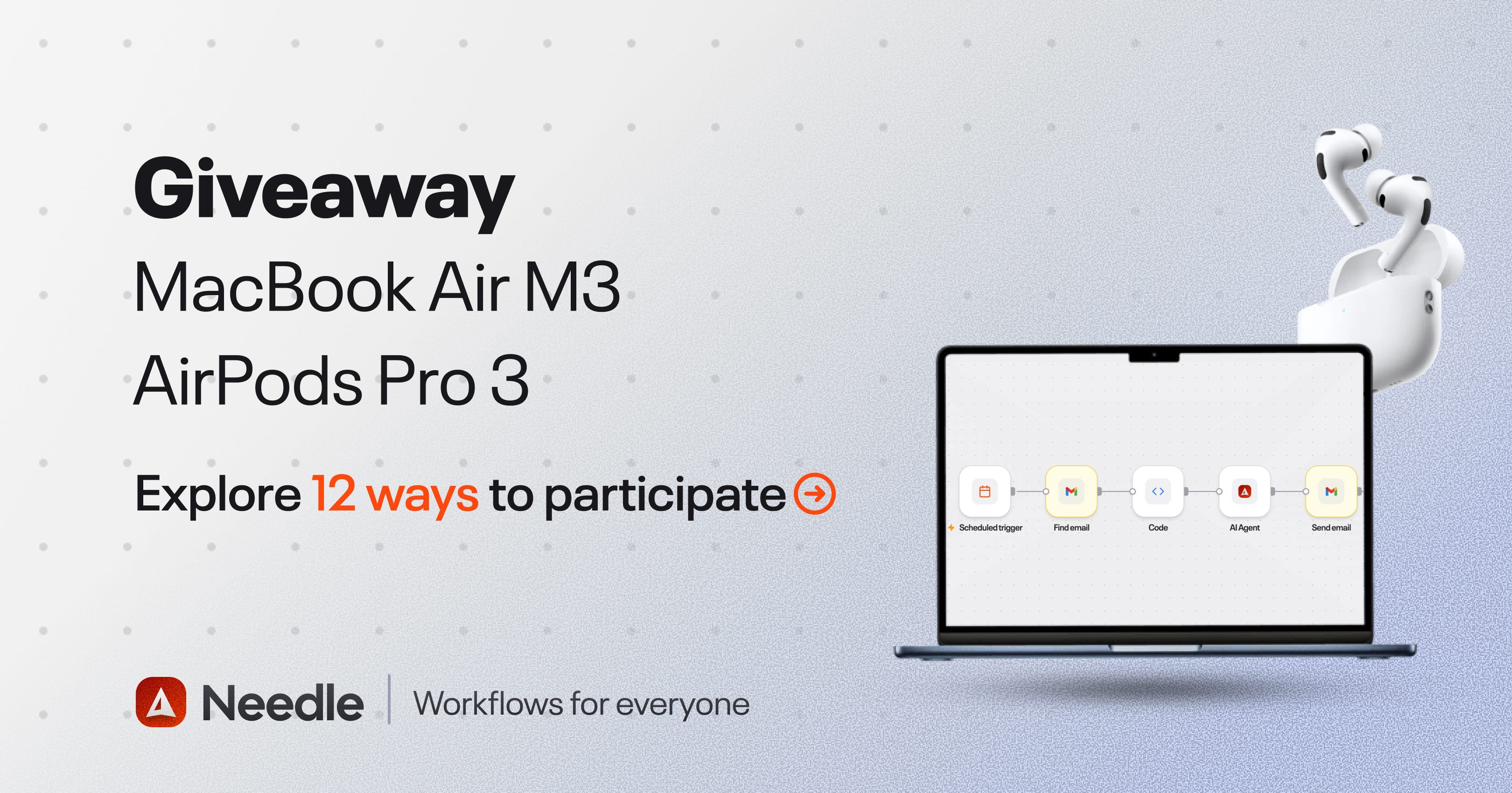 To celebrate autumn and what people are building with Needle, we’re giving away a MacBook Air M3, AirPods Pro 3, and Needle Pro subscriptions.